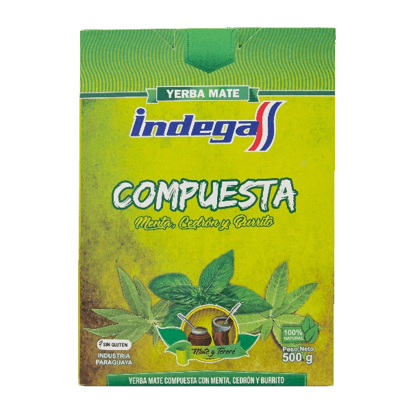 Indega Compuesta Natural este un yerba mate paraguayan cu o aromă frumoasă și bogată de plante. Este un amestec funcțional interesant. Compoziția sa include aditivi naturali, cum ar fi mentă, verbena de lămâie și burrito (o plantă populară în medicina populară paraguayană). Pasionații de ceaiuri din plante îl vor aprecia.