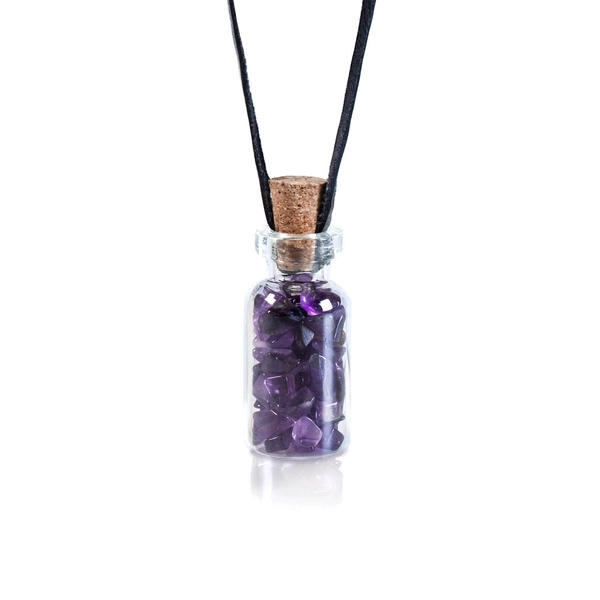 Forma: ametist natural închis într-o sticlă de sticlă cu un cordon