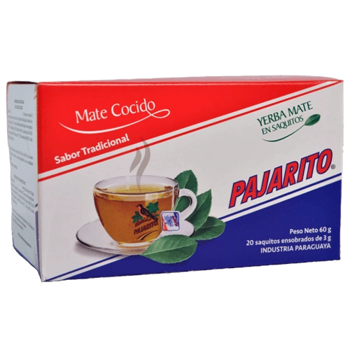 - Pajarito în 20 de pliculețe de 3 g este yerba mate din Paraguay în pliculețe de ceai. Este ușor de preparat, sunt un gust deosebit și prezența cofeinei naturale.