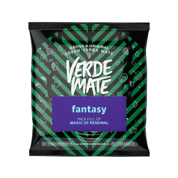 - Verde Mate Green Fantasy este o combinație energizantă de yerba mate, pară, stafide și vanilie, îmbogățită cu petale de trandafir, hibiscus și floarea porumbului. Cofeina naturală stimulează energia, iar gustul fantastic încântă!