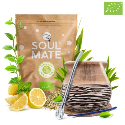 Kit de Yerba Mate Soul Mate Organica Menta Limon 500g 0,5kg Calabash + Bombilla