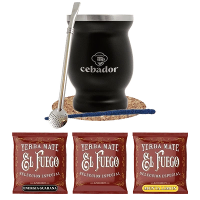 Set de Yerba Mate: Verde Mate Energía Guaraná 500g + Calabash + Bombilla